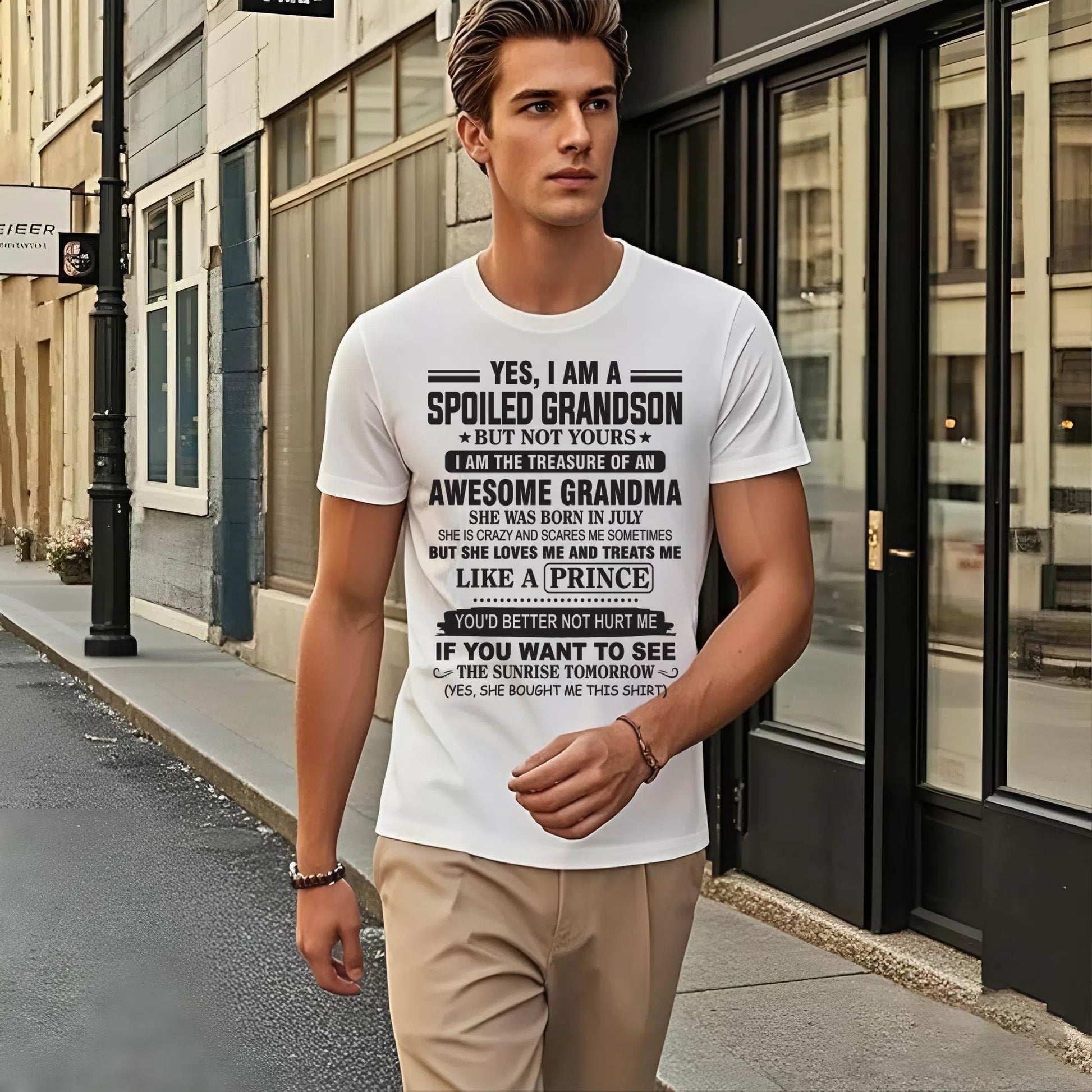 JULY - YES, I AM A SPOILED GRANDSON BUT NOT YOURS I AM THE TREASURE OF AN AWESOME GRANDMA - FROM GRANDMA - TLEE07 (SKU10-57-07)