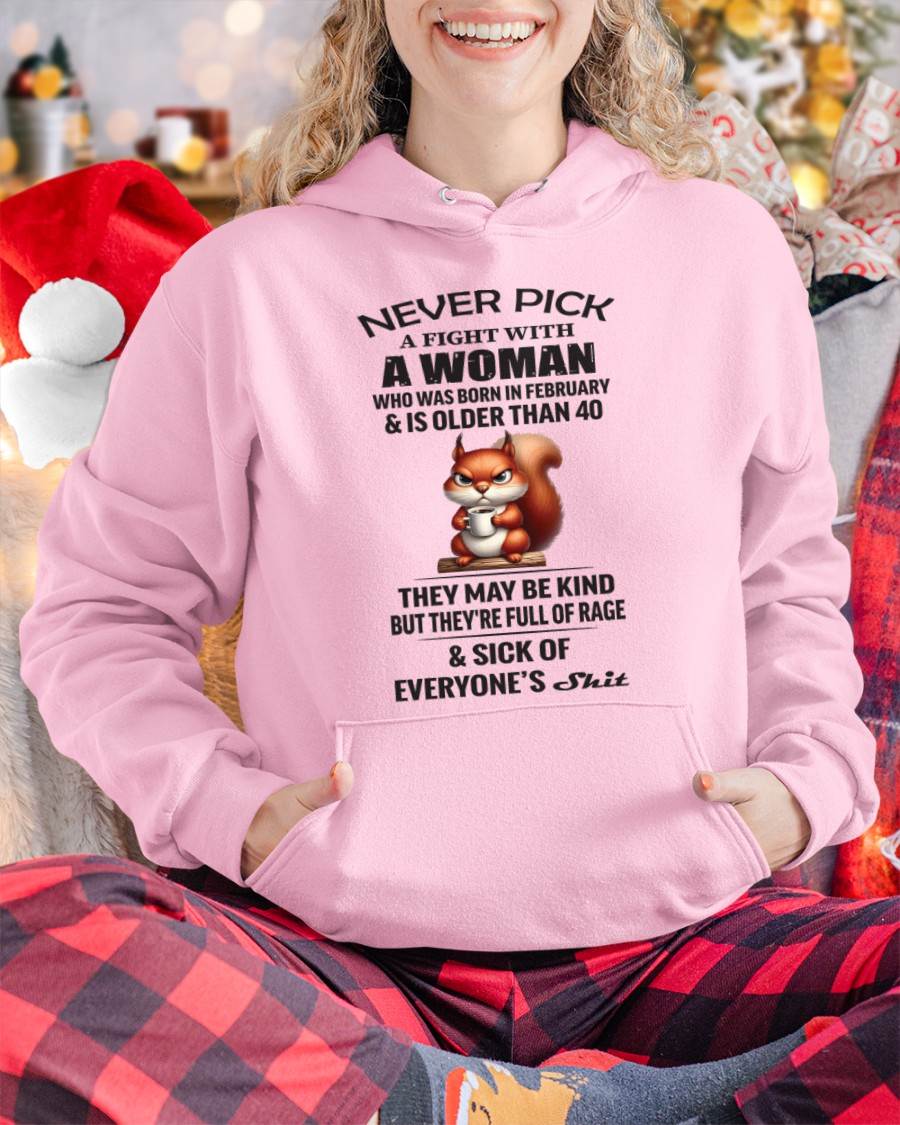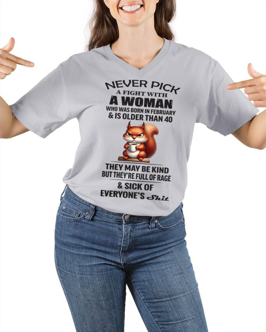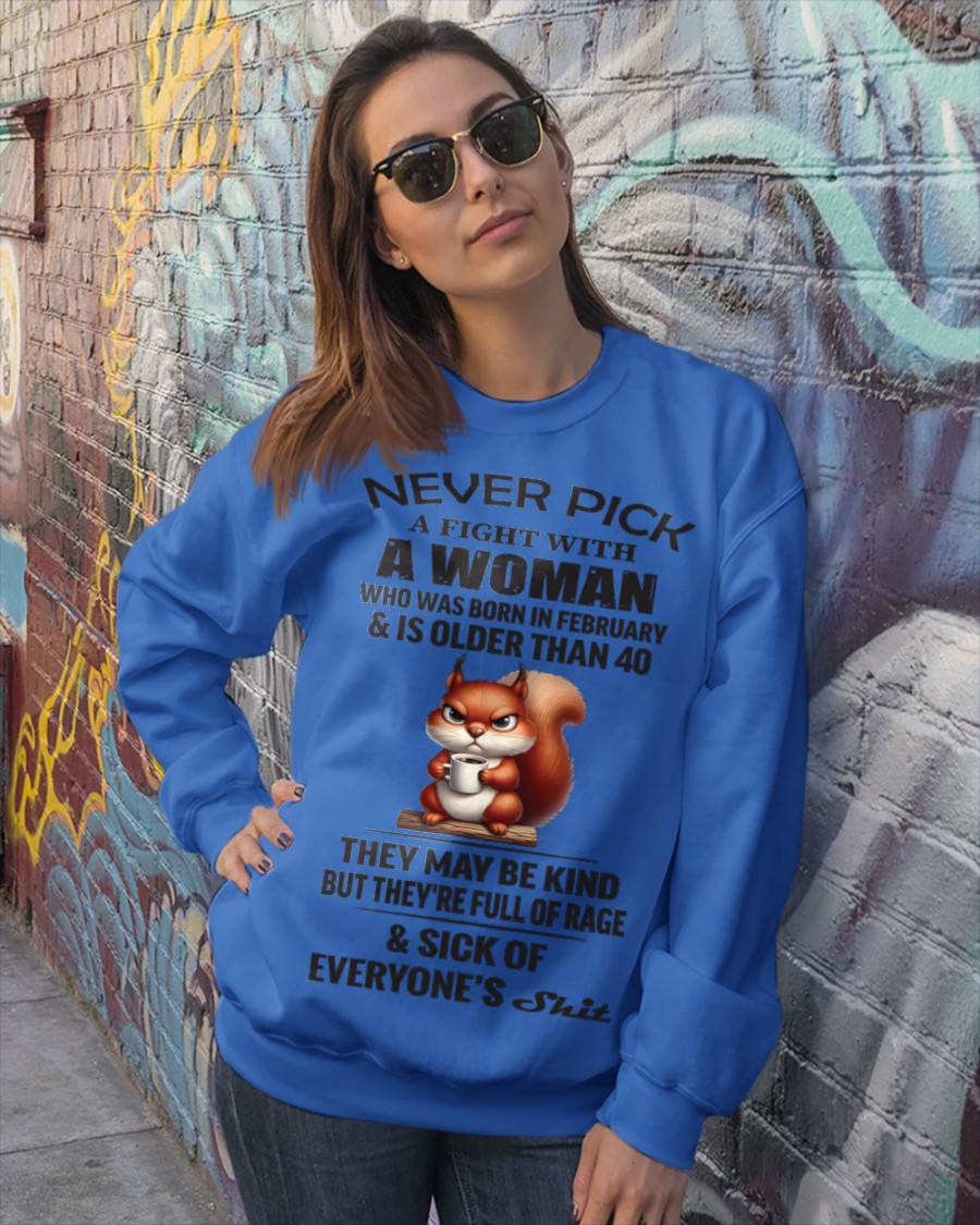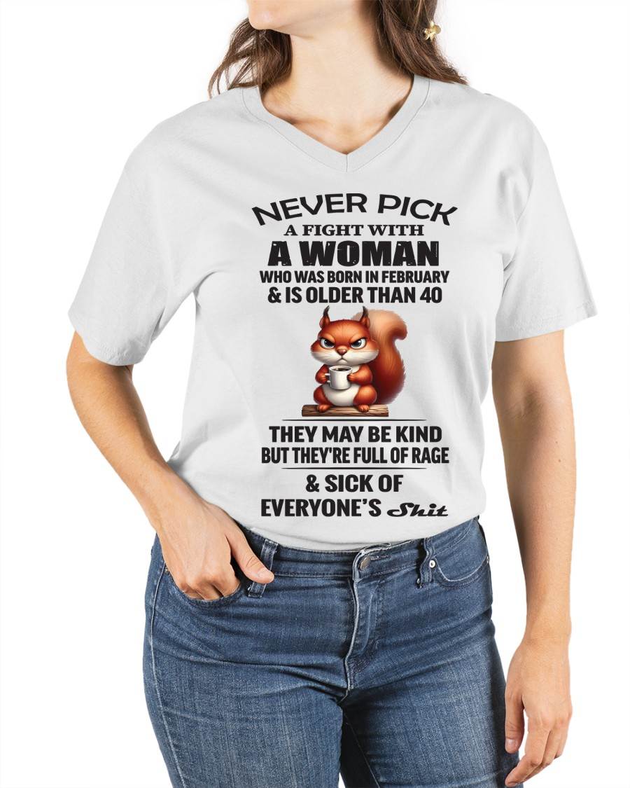FEBRUARY - NEVER PICK A FIGHT WITH A WOMAN WHO WAS BORN IN FEBRUARY & IS OLDER THAN 40 - FOR WOMEN - TLEE02 (SKU09-129-02)